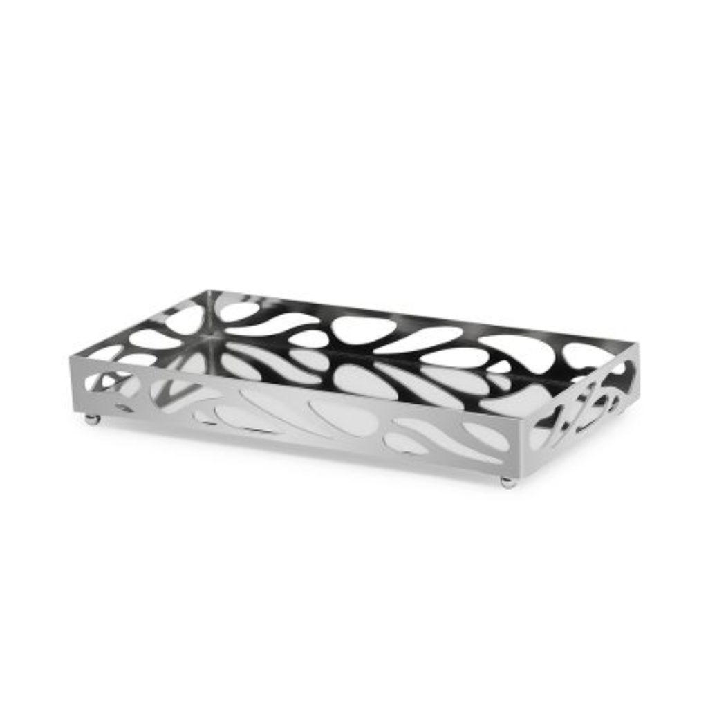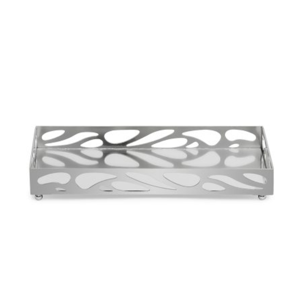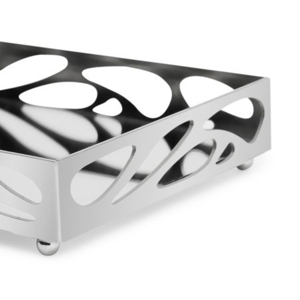 Bandeja em Metal Espelhada Leaf Cromada 24cm