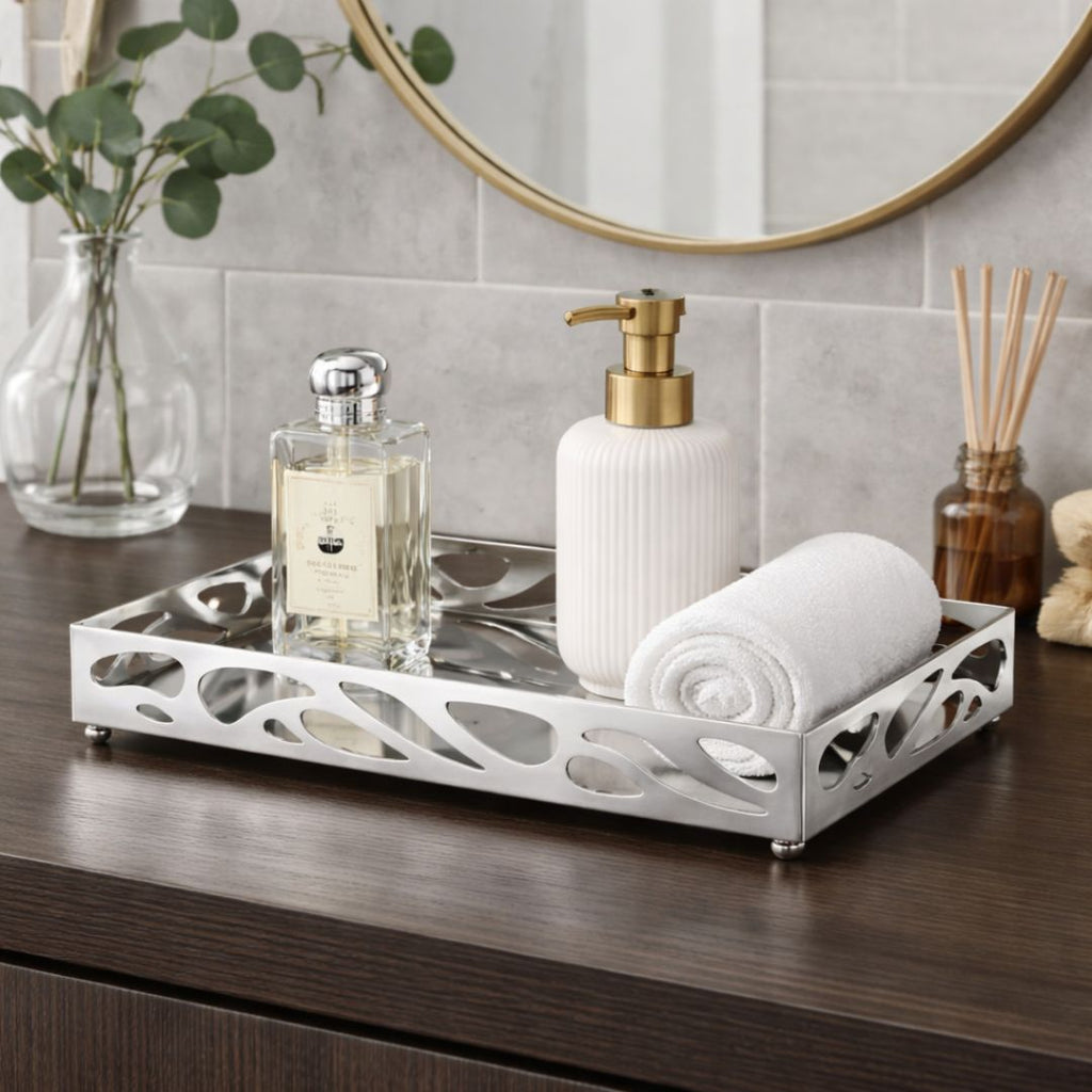 É perfeita para quem busca elegância moderna e acabamento sofisticado na decoração. Produzida em metal com banho prateado de alta qualidade e base espelhada resistente, ela une durabilidade, brilho e requinte em uma única peça.