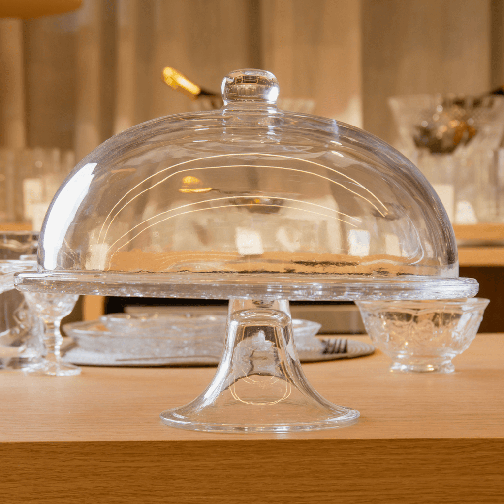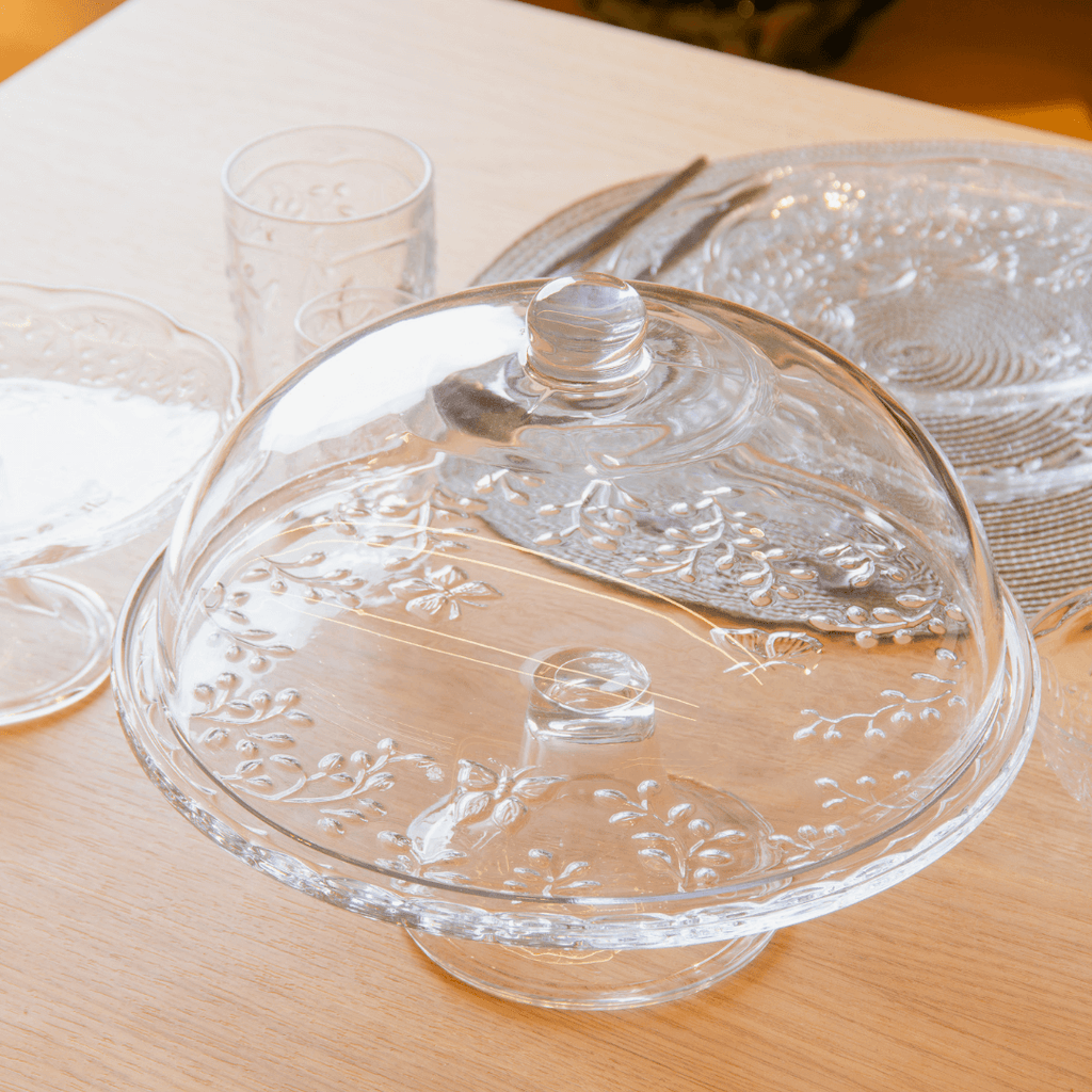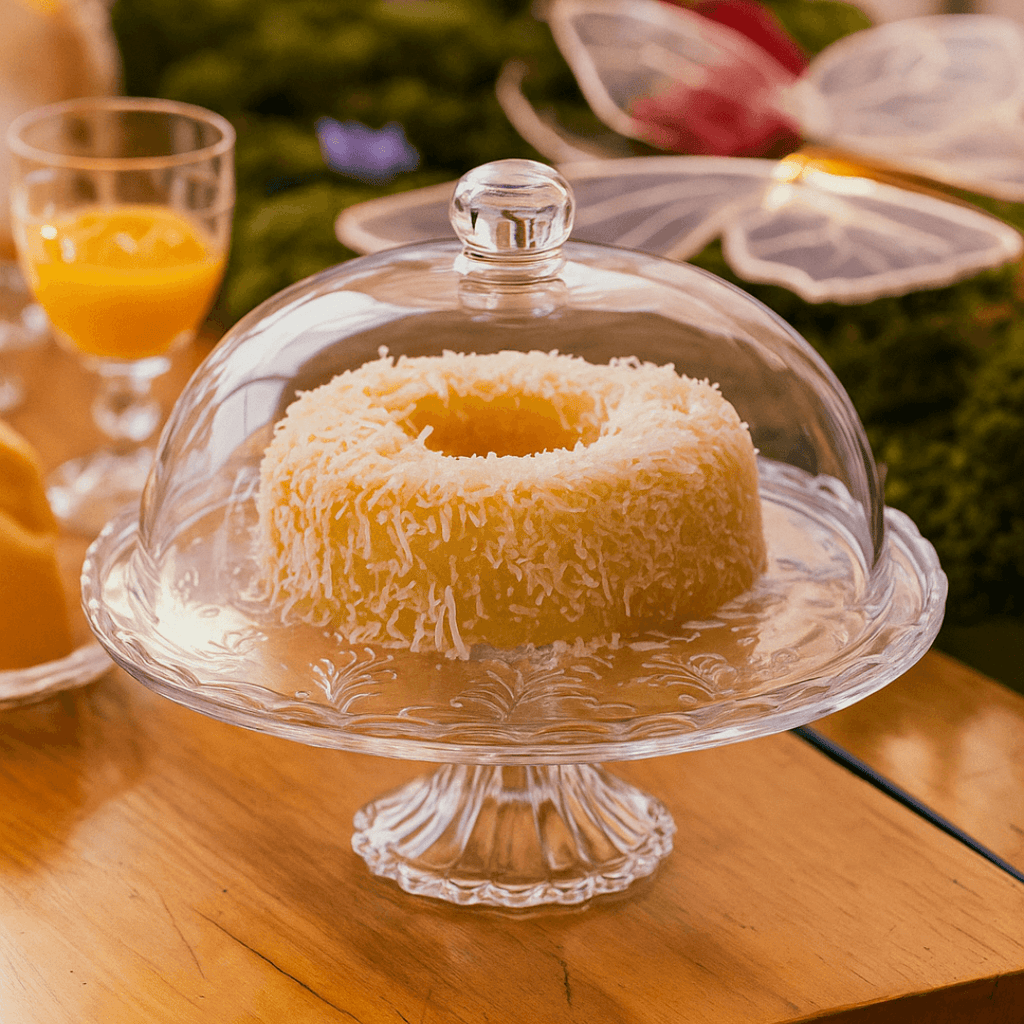 Realce a beleza das suas criações culinárias com o Prato para Bolo com Pé e Tampa de Cristal New Butterfly 30cm.