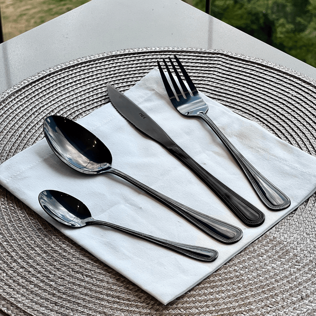 O Faqueiro 24 Peças Sicilia em Aço Inox Preto une sofisticação e durabilidade para transformar suas refeições. Design moderno e resistente para uma mesa impecável!
