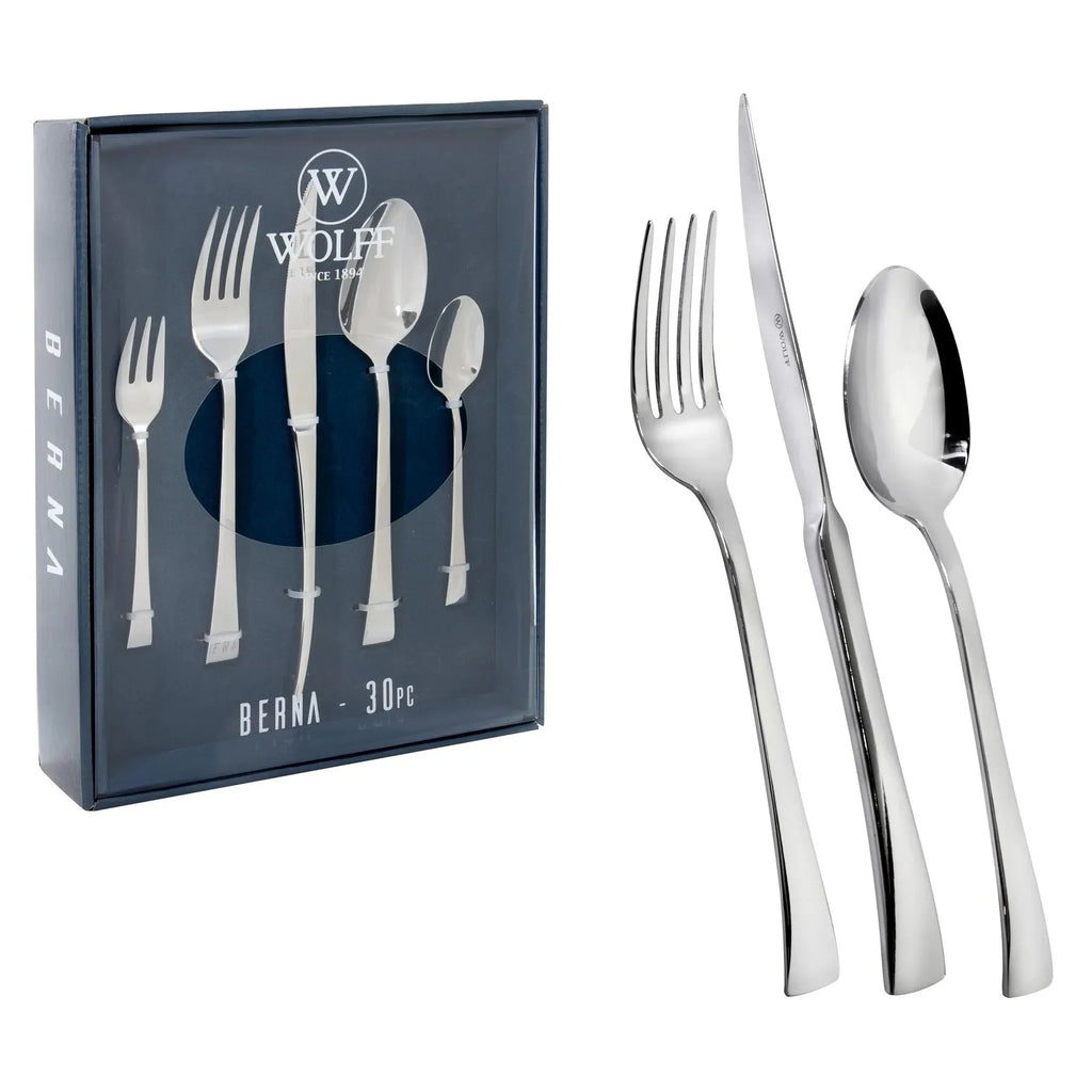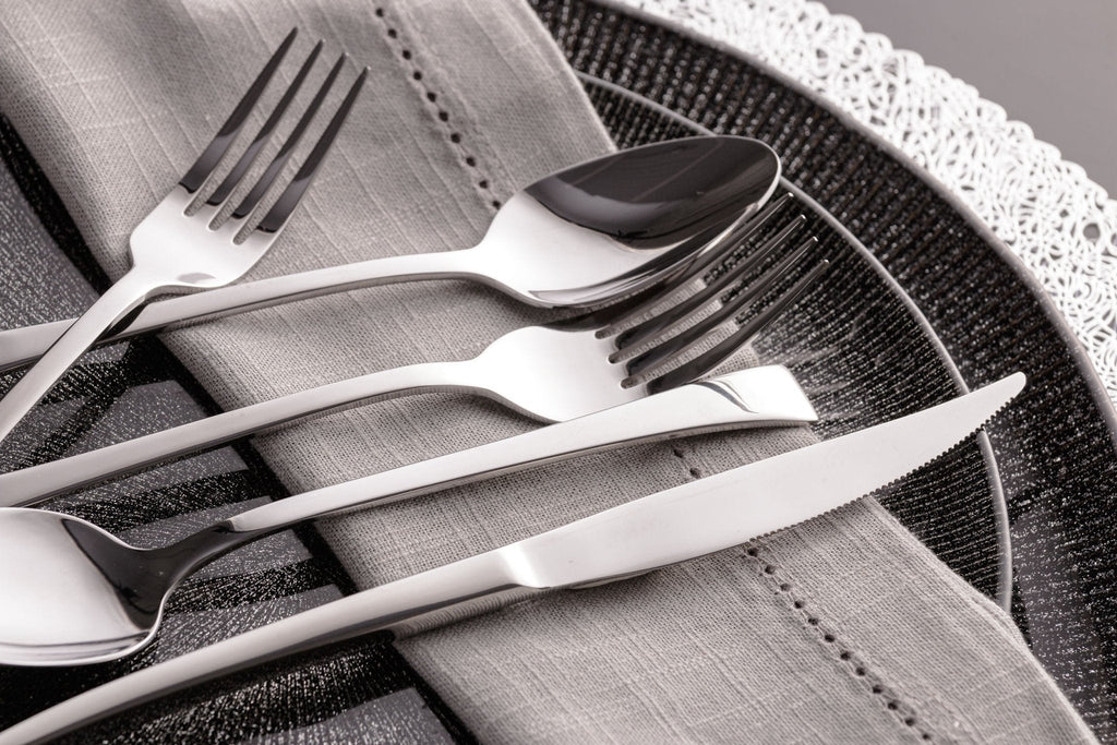 - Inclui: 6 Facas de Mesa, 6 Garfos de Mesa, 6 Colheres de Mesa, 6 Garfos de Bolo, 6 Colheres de Chá.
