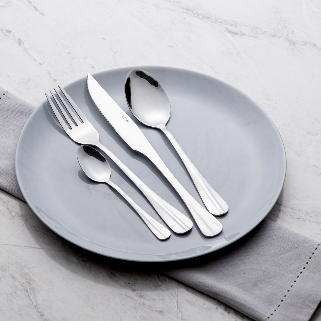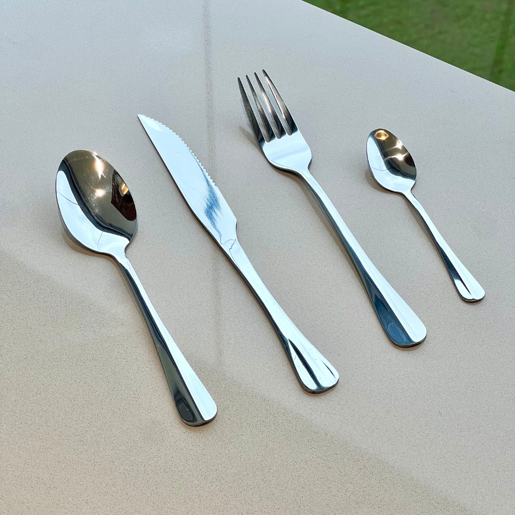 • O jogo é super completo, inclui: garfos, facas, colher de mesa e colher de sobremesa;