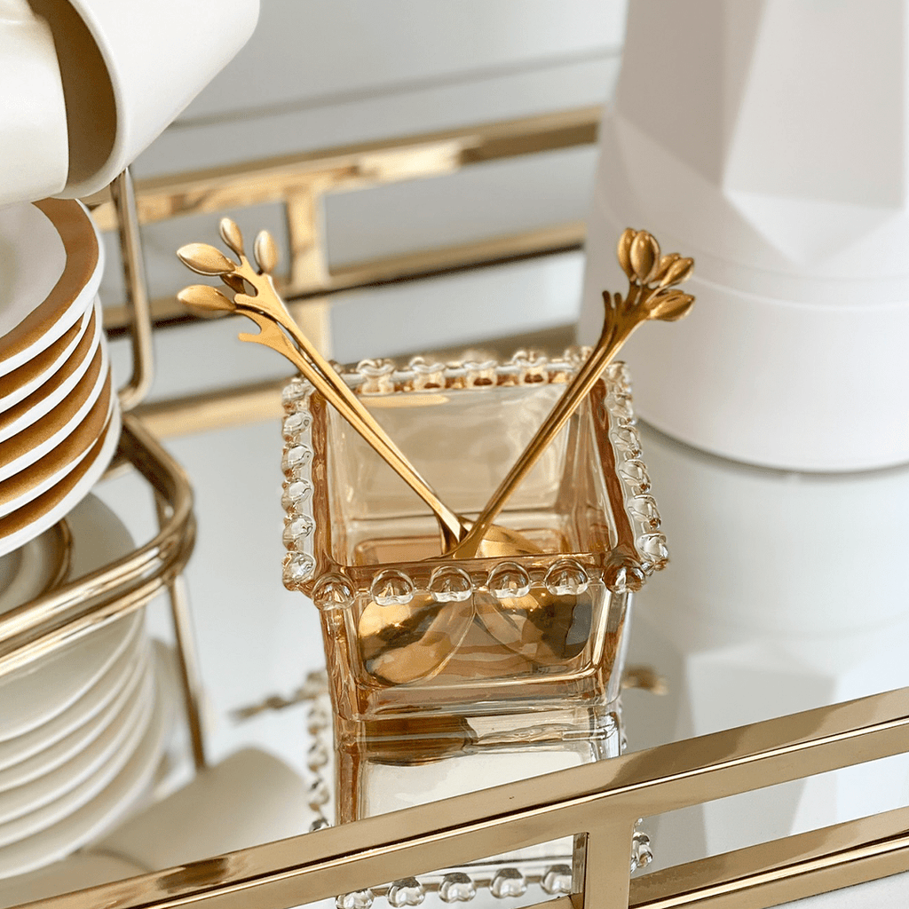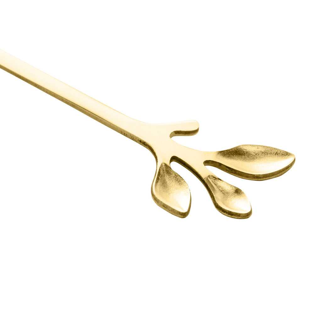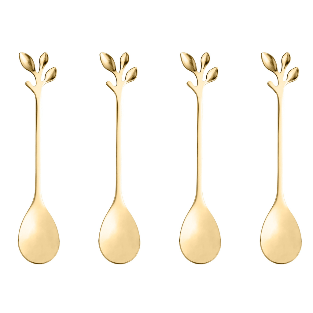 Jogo 4 Colheres Para Chá Aço Inox Leaves Dourado