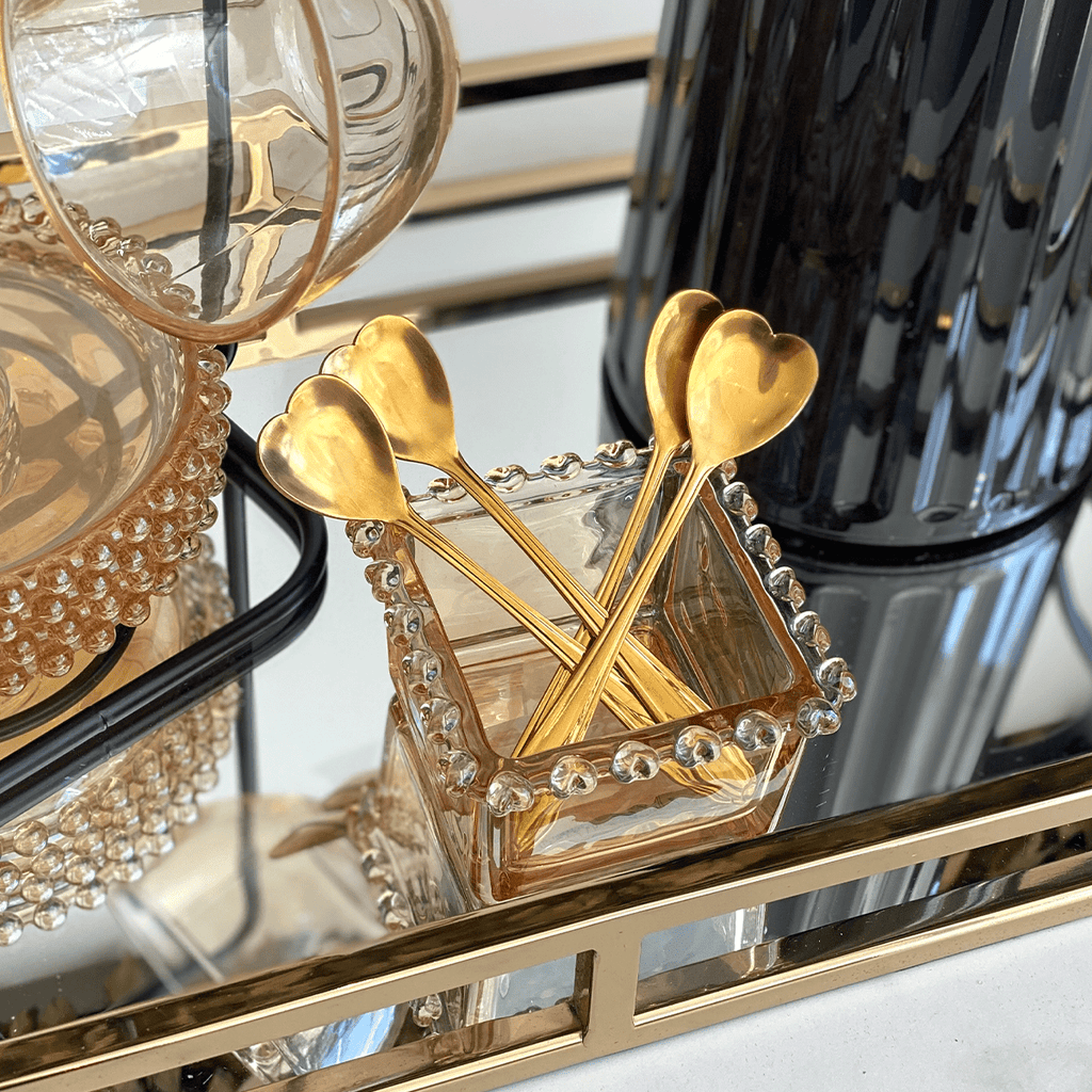 - O conjunto de colherzinhas douradas de corações é perfeito para diversos tipos de sobremesas, tortas ou petiscos;