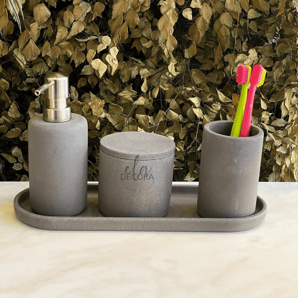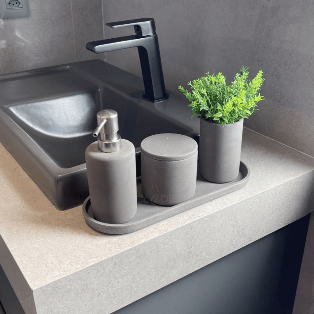 O Kit para Banheiro Cimento Cinza 4 Peças traz sofisticação e charme para o seu banheiro.