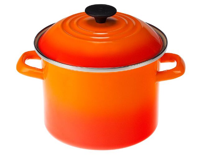 A Panela Stock Pot Laranja 22cm Le Creuset além de charmosa, é leve e durável, oferece praticidade e eficiência para sua cozinha.