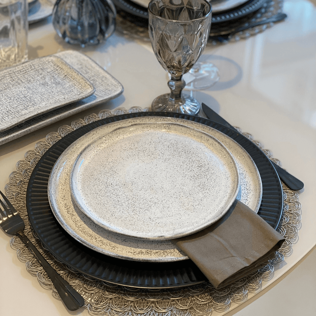 • Fabricado em cerâmica Grés de forma artesanal, este prato ainda possui um lindo acabamento na cor branca e detalhes pretos;